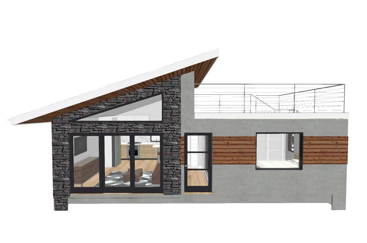 | Exterior Elevations | 3D Rendering images of building exterior, including window and doors locations. Suggested exterior finish. |