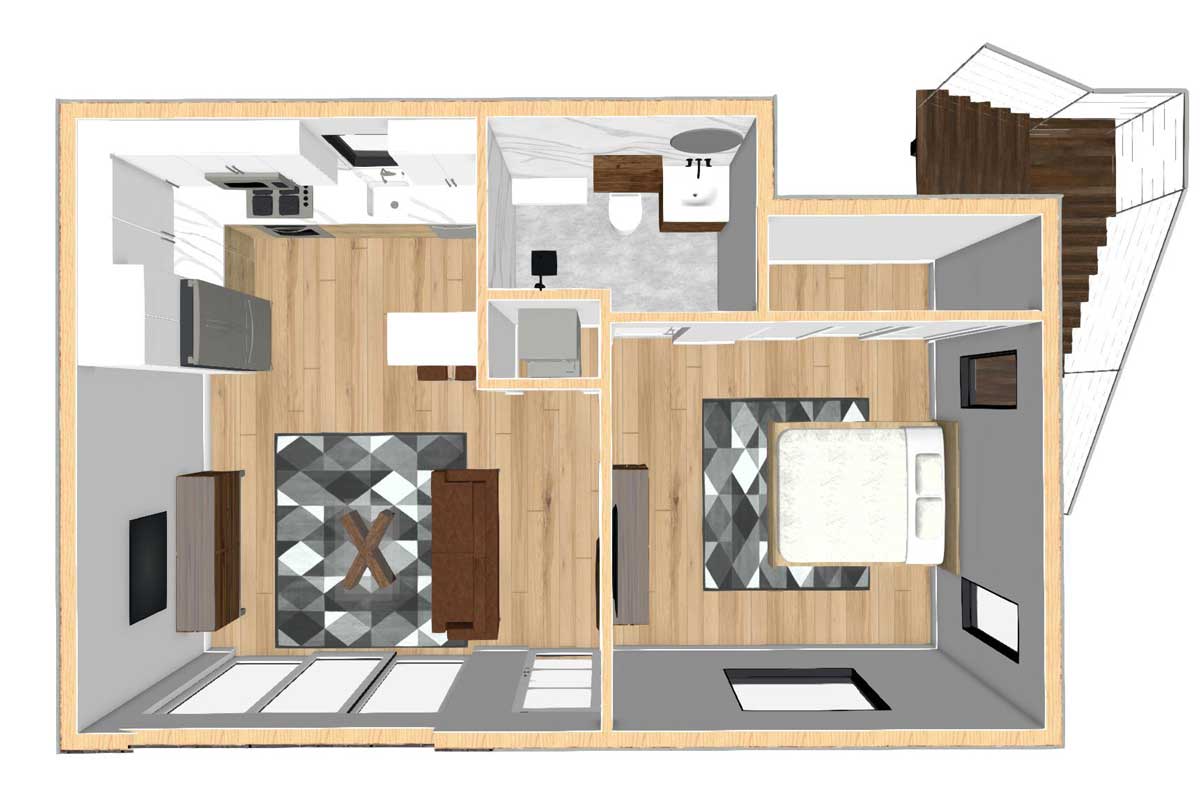 | Interior Elevations | 3D Rendering images of building interiors, including windows and doors locations. Suggested interior finish. |