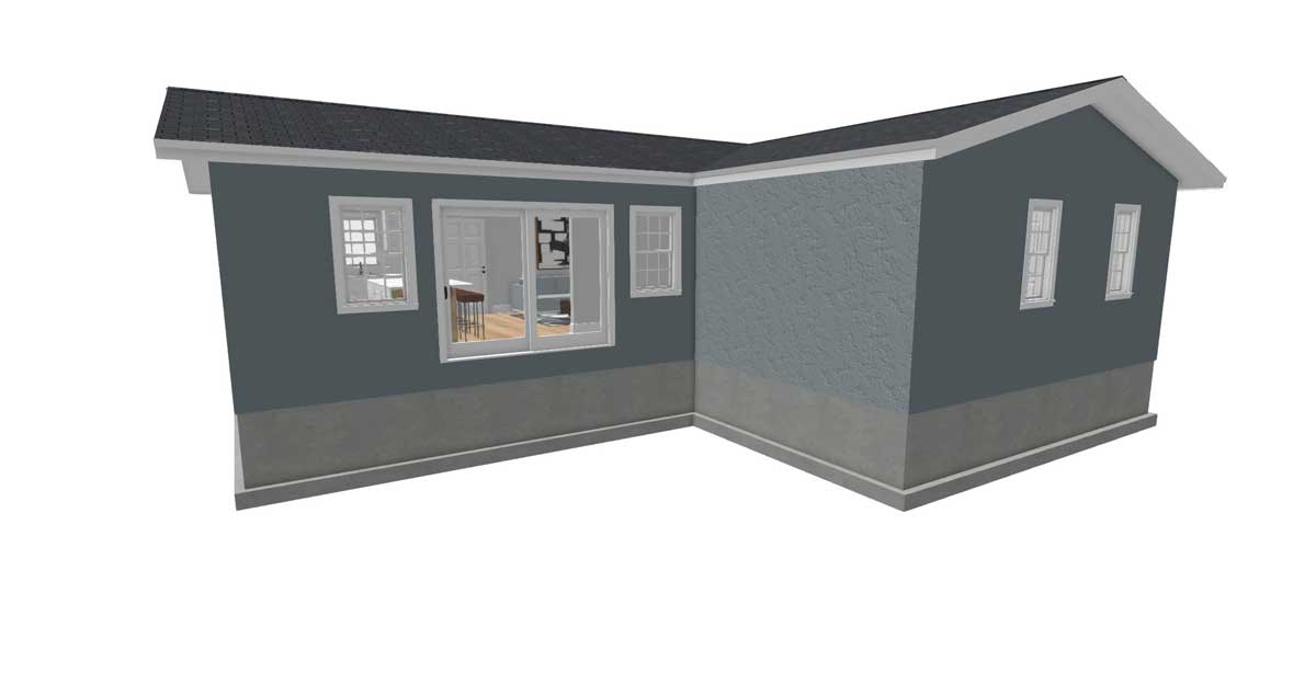 Exterior Elevations 3D Rendering images of building exterior, including window and doors locations. Suggested exterior finish.