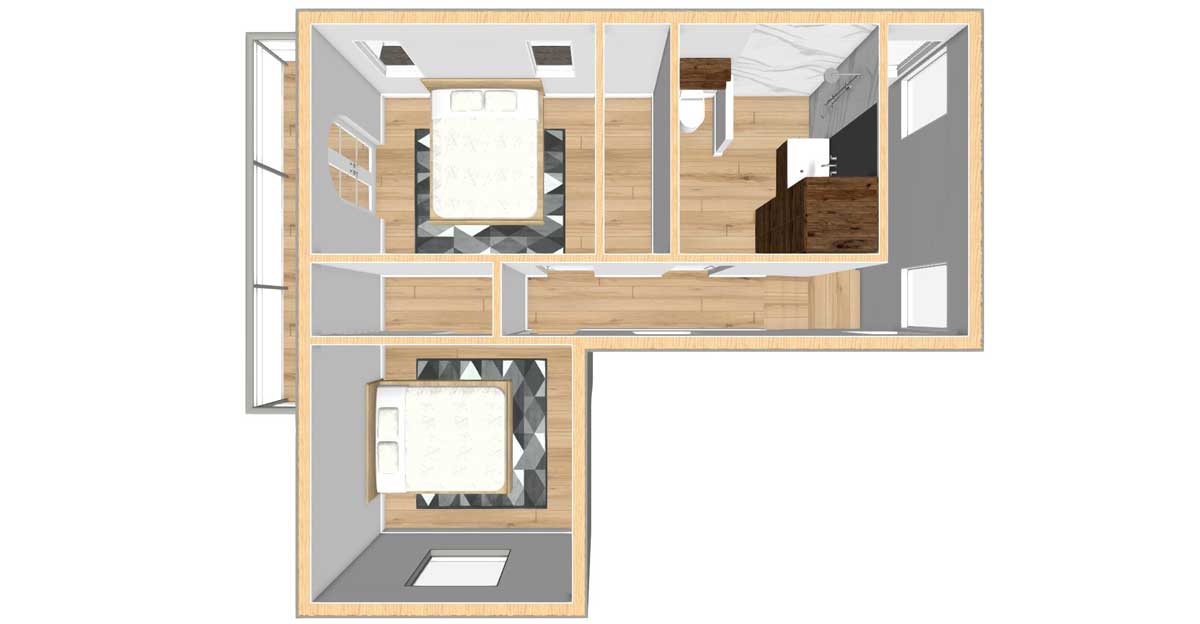 | Interior Elevations | 3D Rendering images of building interiors, including windows and doors locations. Suggested interior finish. |