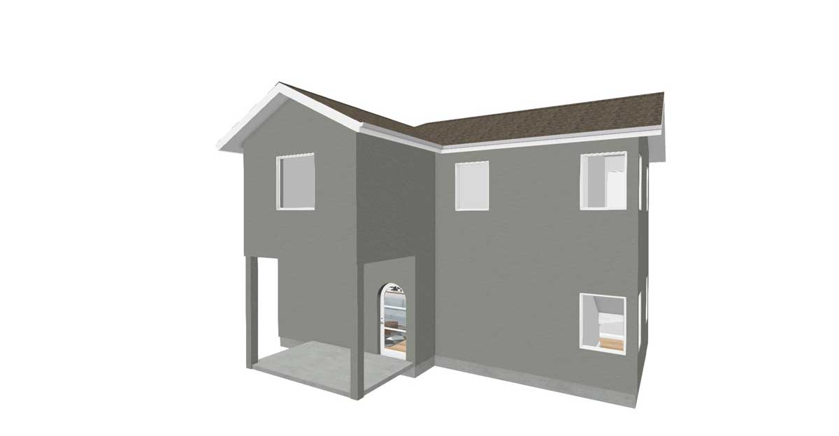 | Exterior Elevations | 3D Rendering images of building exterior, including window and doors locations. Suggested exterior finish. |