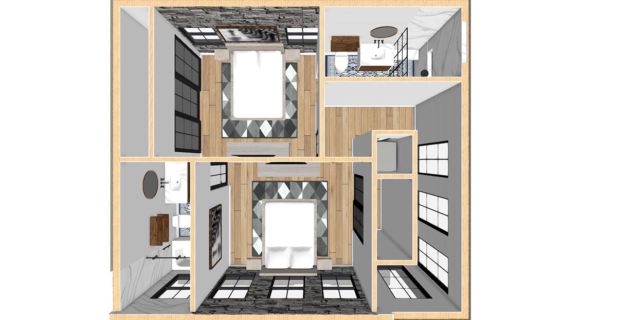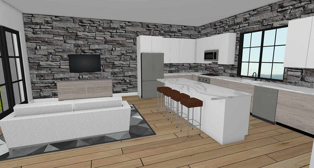 | Interior Elevations | 3D Rendering images of building interiors, including windows and doors locations. Suggested interior finish. |